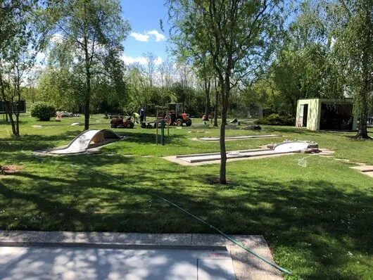 5. Mai In der ersten Maiwoche konnte dank der Lockerungen (COVID 19) mit dringenden Reparatur- und Renovierungsarbeiten auf unserer Miniaturgolfanlage begonnen werden.